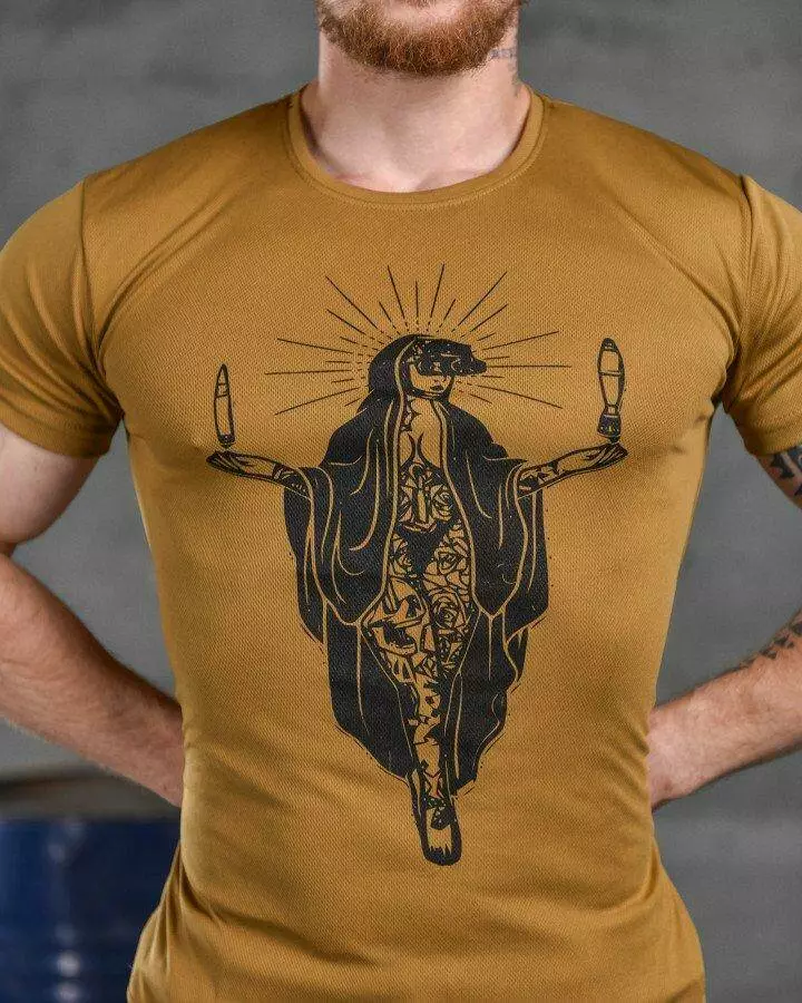 Футболка з класичним круглим вирізом, коротким рукавом та високоякісним принтом.