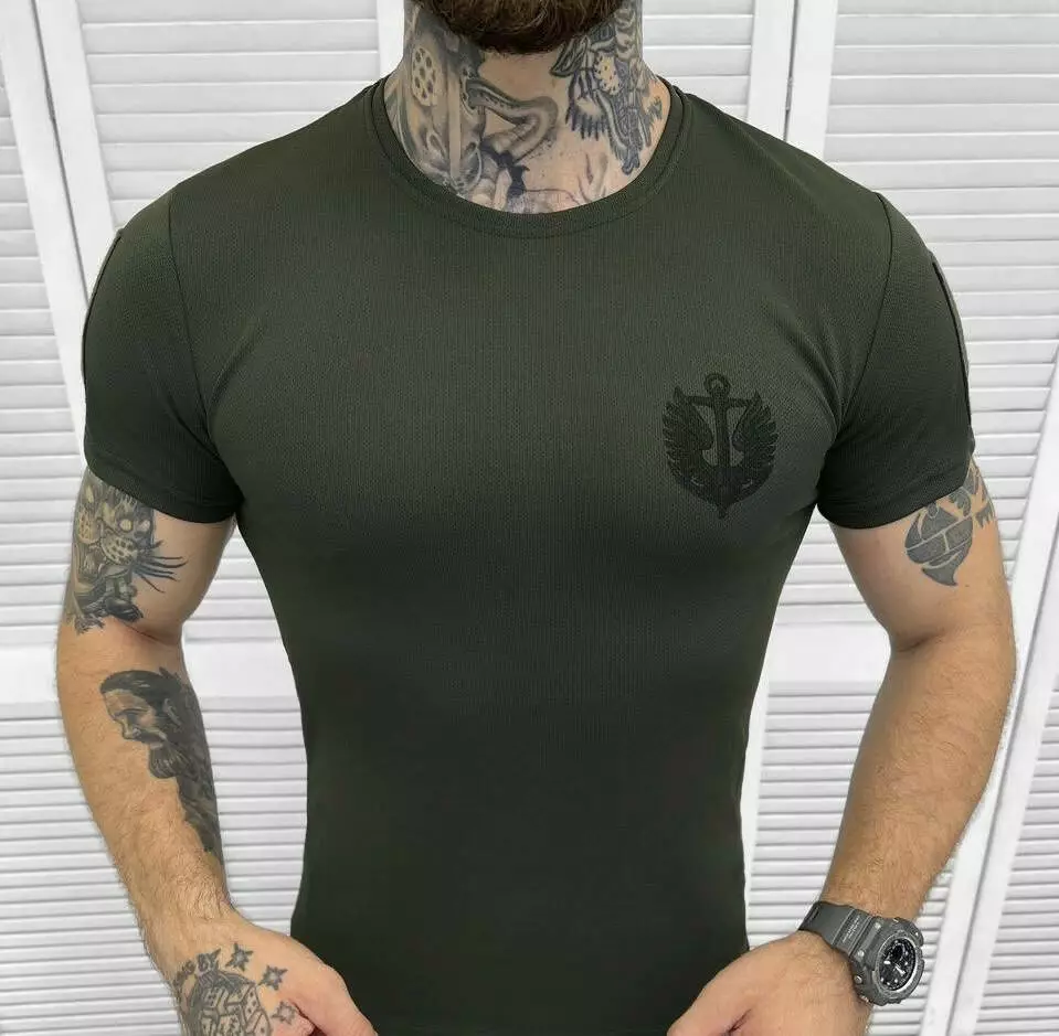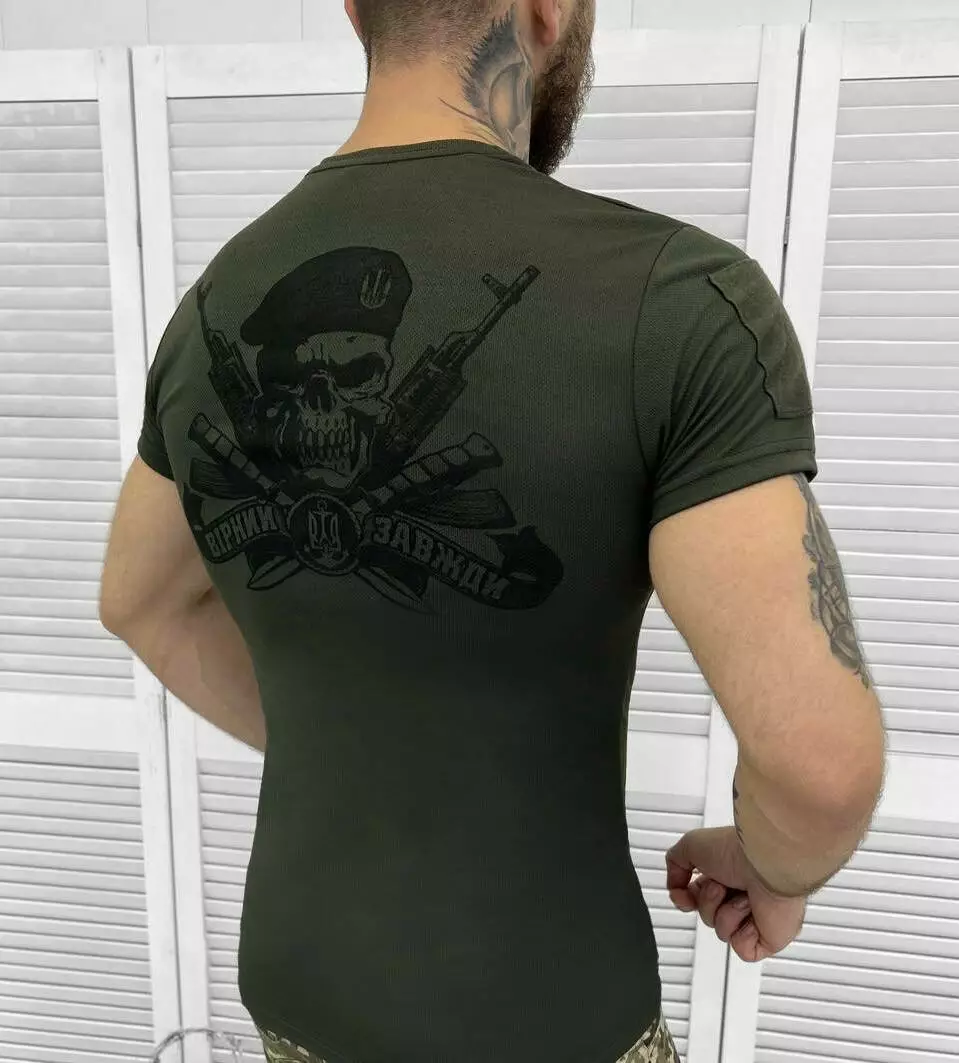 Футболка потовідвідна з принтом Coolmax олива