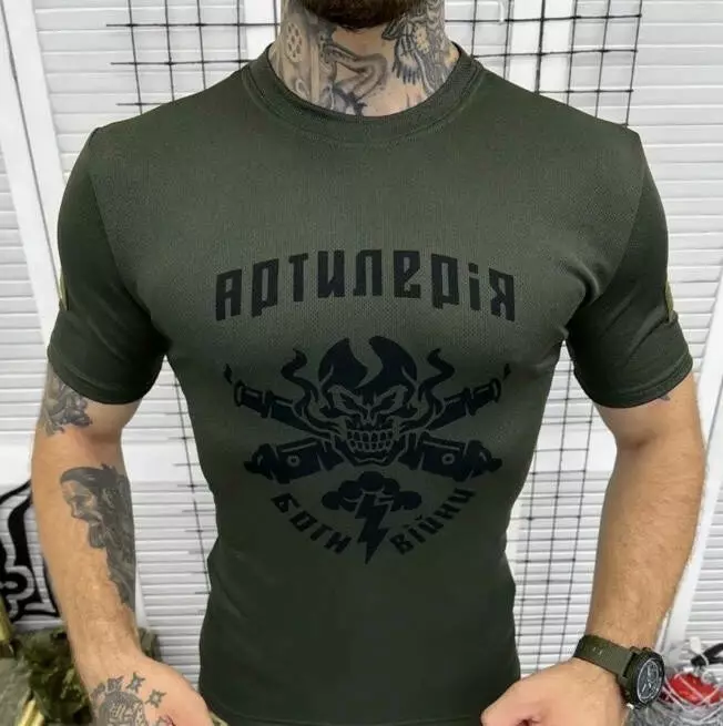 Футболка потовідвідна з принтом Coolmax олива