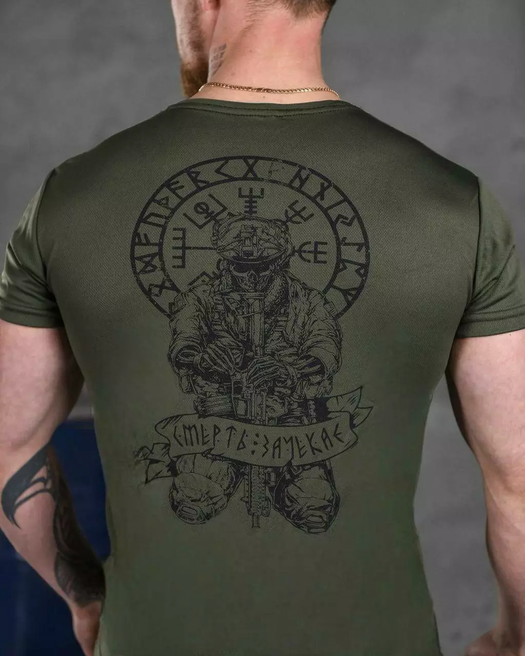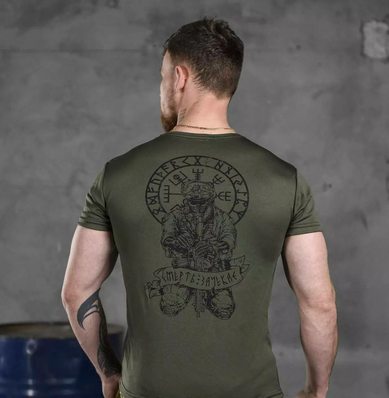 Футболка з класичним круглим вирізом, коротким рукавом та високоякісним принтом.