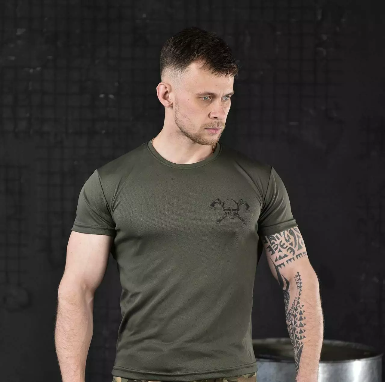 Футболка потовідвідна з принтом Coolmax олива