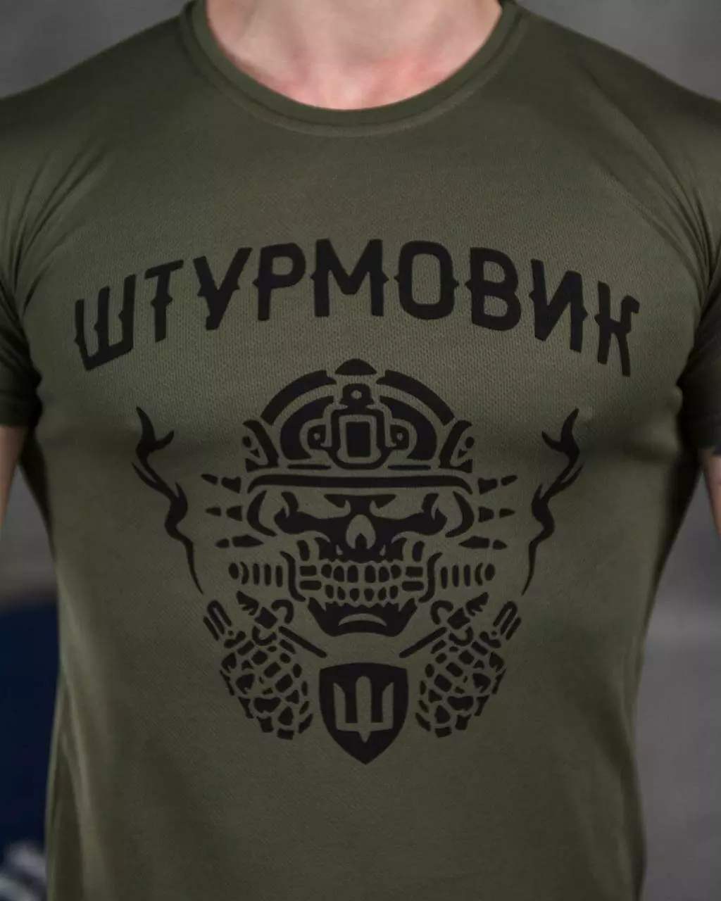 Футболка потовідвідна з принтом Coolmax олива