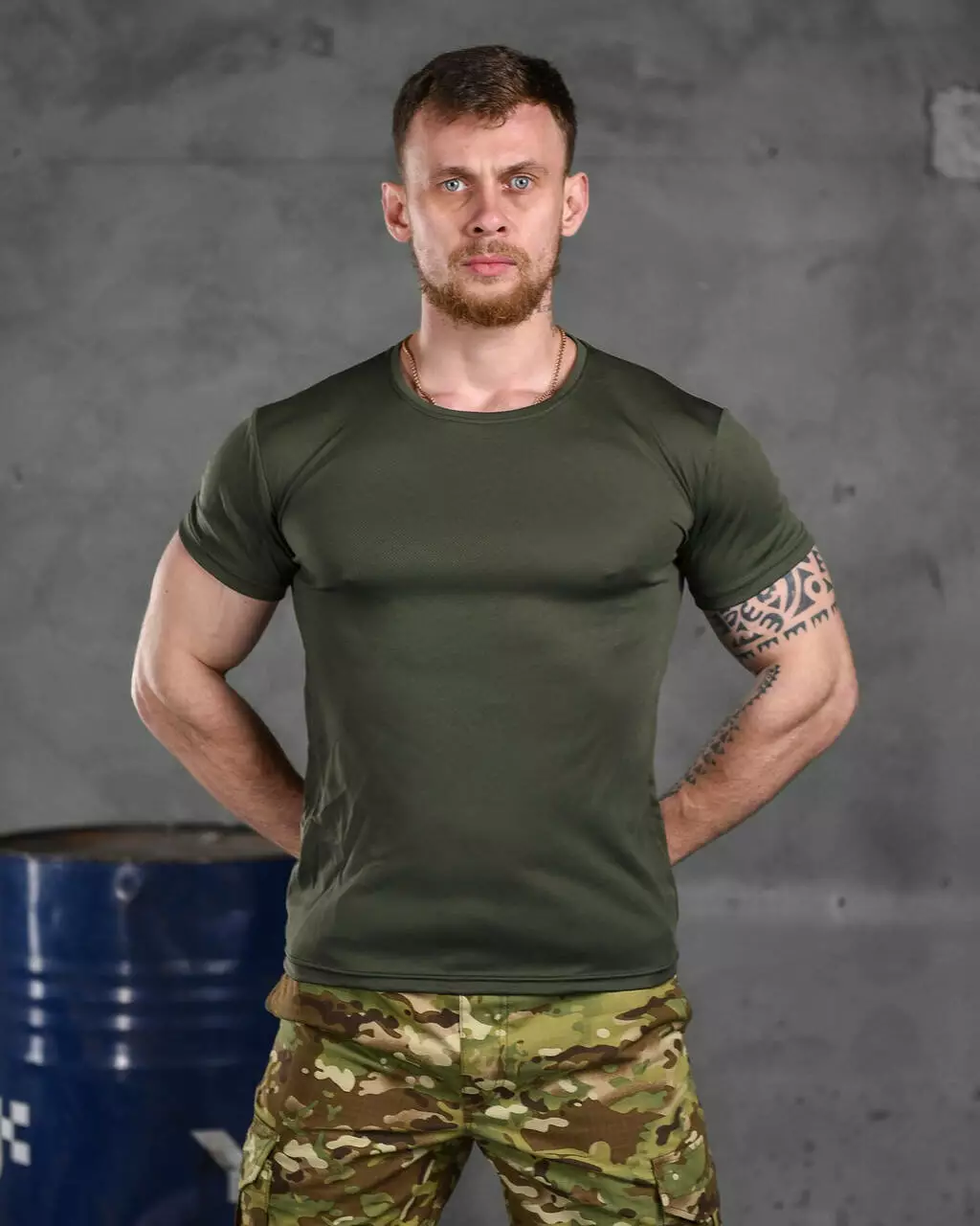 Футболка потовідвідна з принтом Coolmax олива