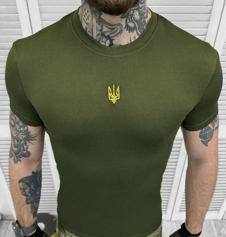 Футболка потовідвідна з вишивкою Coolmax олива