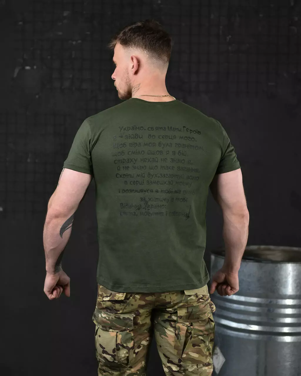 Футболка з принтом бавовняна олива (продаж ростовкою)