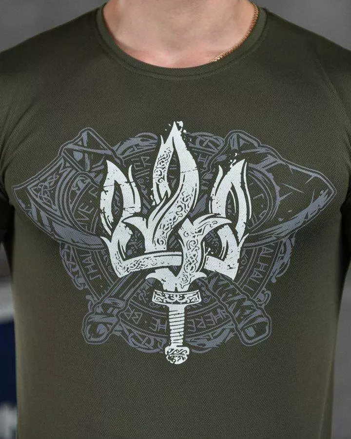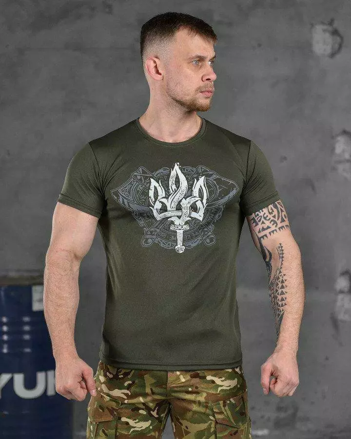 Футболка з принтом бавовняна олива (продаж ростовкою)