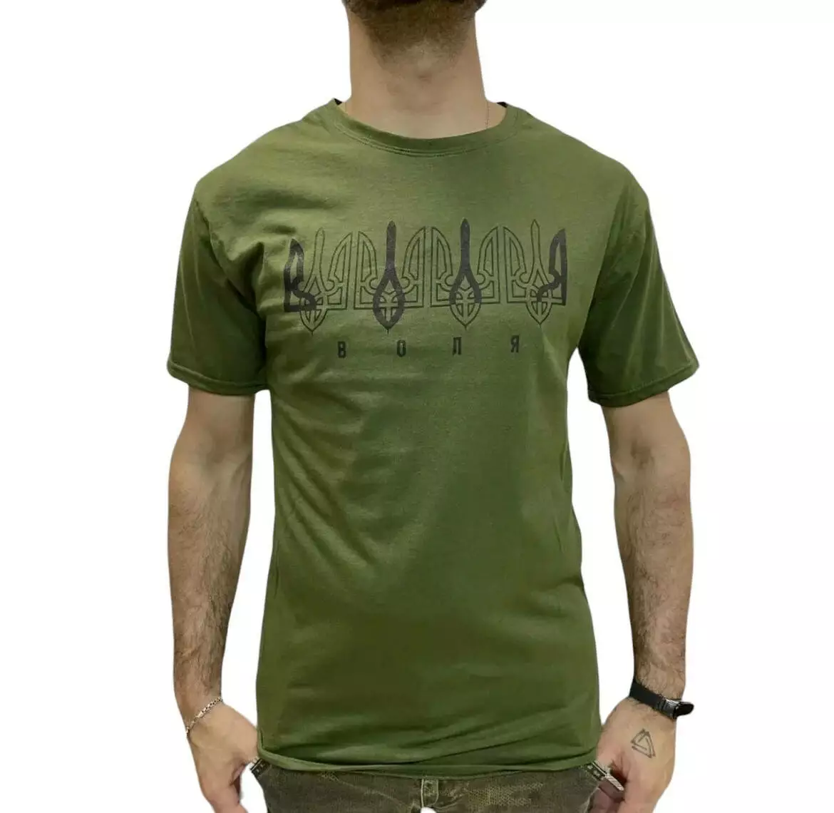 Футболка з принтом бавовняна олива (продаж ростовкою)