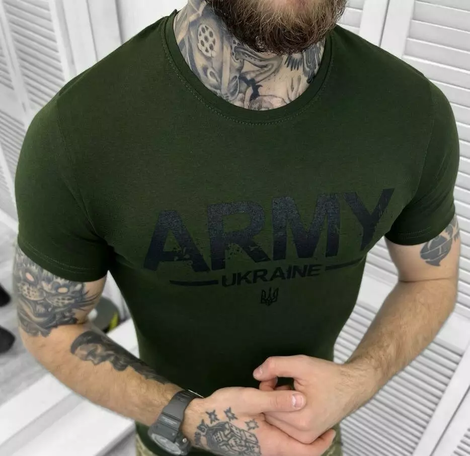 Футболка з принтом бавовняна олива Турція (продаж ростовкою)