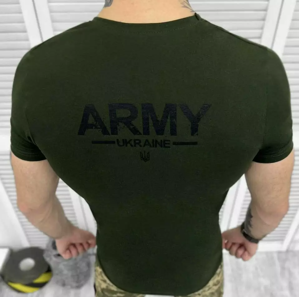 Футболка з принтом бавовняна олива Україна (продаж ростовкою)