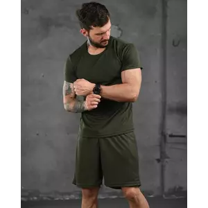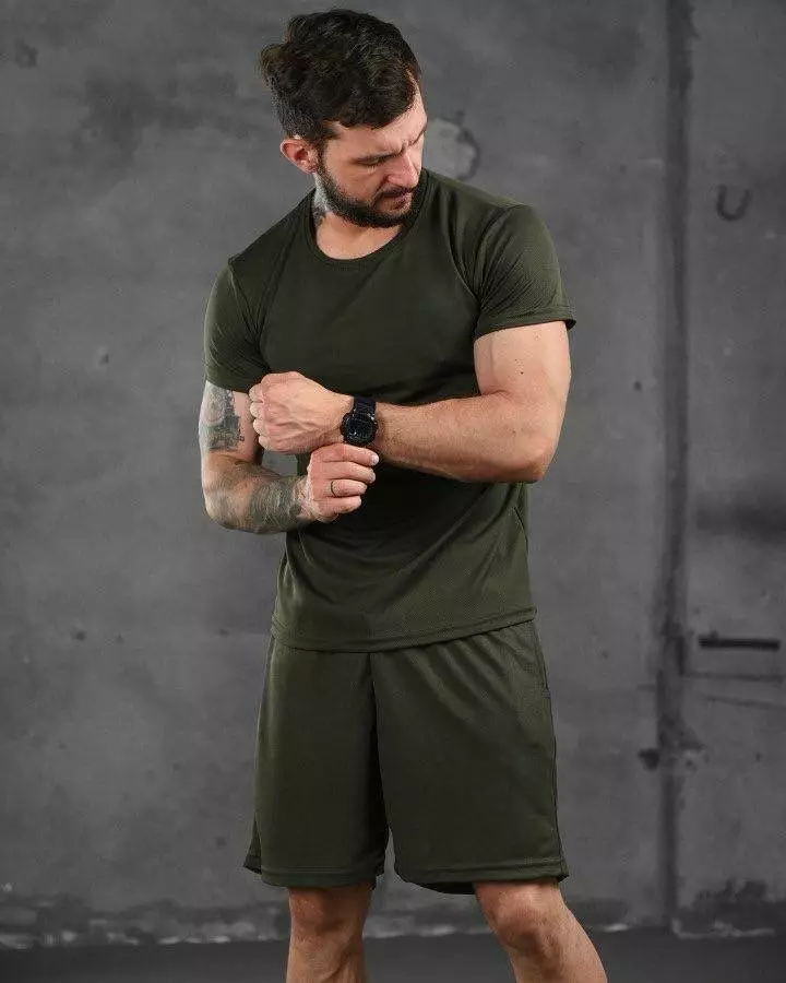 Підготуйтеся до літа з нашим стильним чоловічим комплектом, що містить комфортні шорти та футболку. Шорти виготовлені з легкого дихаючого матеріалу, який ідеально підходить для активного способу життя. У них зручний пояс на зав'язках для ідеальної посадки. Футболка виготовлена з поліестеру, що забезпечує еластичність і комфорт.