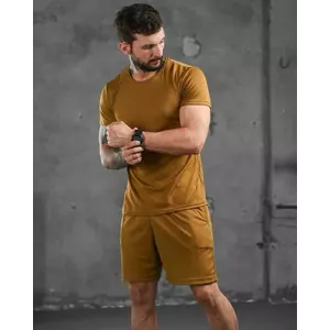 Підготуйтеся до літа з нашим стильним чоловічим комплектом, що містить комфортні шорти та футболку. Шорти виготовлені з легкого дихаючого матеріалу, який ідеально підходить для активного способу життя. У них зручний пояс на зав'язках для ідеальної посадки. Футболка виготовлена з поліестеру, що забезпечує еластичність і комфорт.
