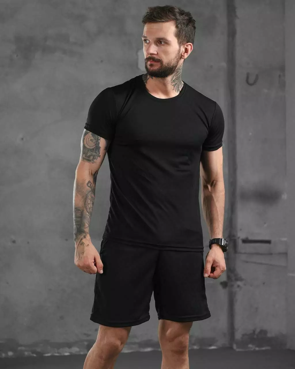 Підготуйтеся до літа з нашим стильним чоловічим комплектом, що містить комфортні шорти та футболку. Шорти виготовлені з легкого дихаючого матеріалу, який ідеально підходить для активного способу життя. У них зручний пояс на зав'язках для ідеальної посадки. Футболка виготовлена з поліестеру, що забезпечує еластичність і комфорт.