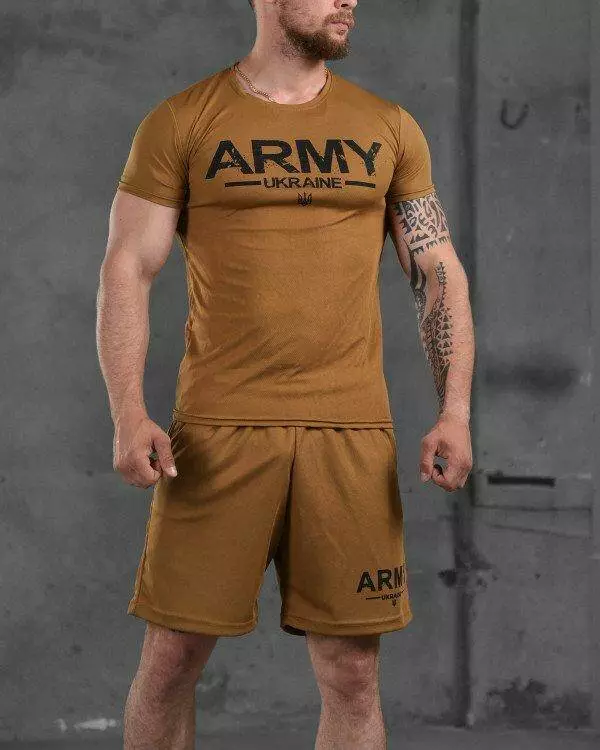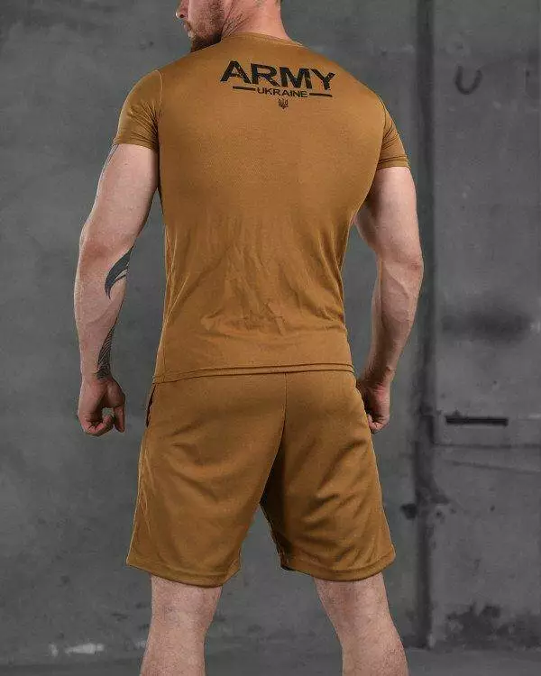Підготуйтеся до літа з нашим стильним чоловічим комплектом, що містить комфортні шорти та футболку. Шорти виготовлені з легкого дихаючого матеріалу, який ідеально підходить для активного способу життя. У них зручний пояс на зав'язках для ідеальної посадки. Футболка виготовлена з поліестеру, що забезпечує еластичність і комфорт. Вона має стильний принт на грудях і чудово поєднується із шортами.