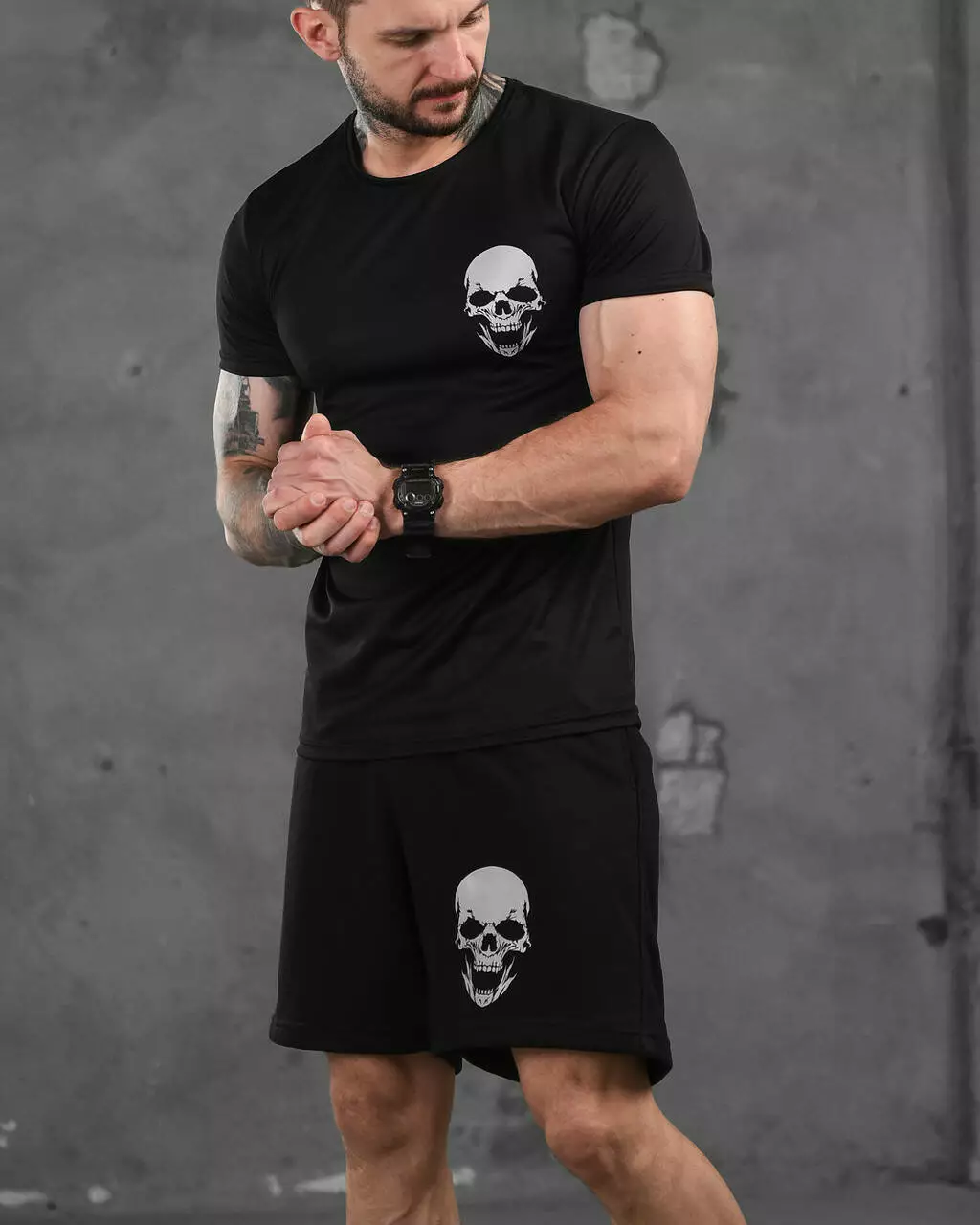 Підготуйтеся до літа з нашим стильним чоловічим комплектом, що містить комфортні шорти та футболку. Шорти виготовлені з легкого дихаючого матеріалу, який ідеально підходить для активного способу життя. У них зручний пояс на зав'язках для ідеальної посадки. Футболка виготовлена з поліестеру, що забезпечує еластичність і комфорт. Вона має стильний принт на грудях і чудово поєднується із шортами.