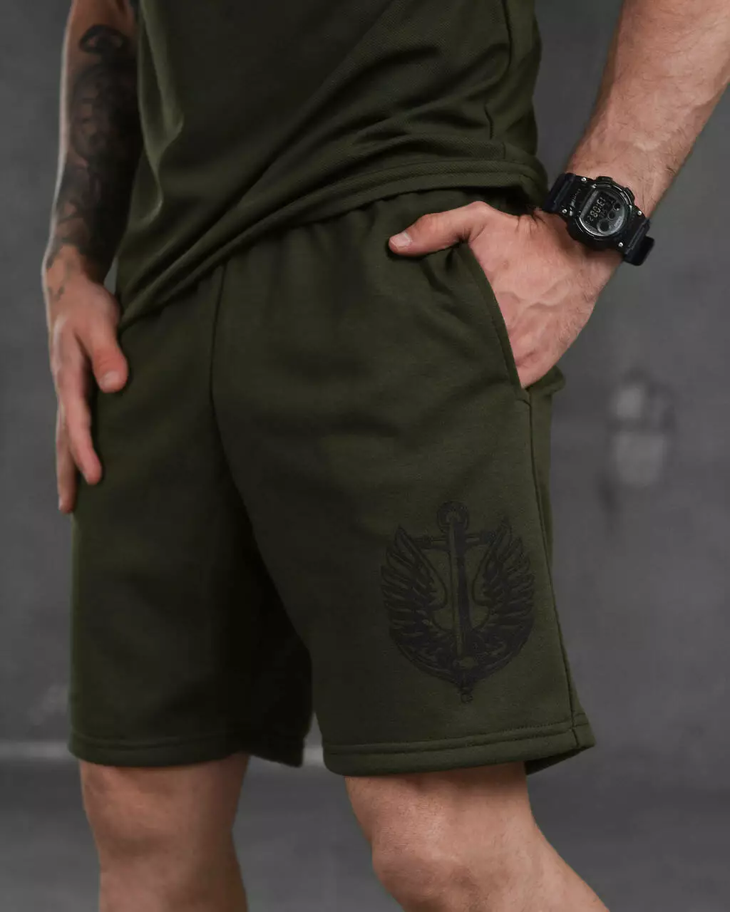 Підготуйтеся до літа з нашим стильним чоловічим комплектом, що містить комфортні шорти та футболку. Шорти виготовлені з легкого дихаючого матеріалу, який ідеально підходить для активного способу життя. У них зручний пояс на зав'язках для ідеальної посадки. Футболка виготовлена з поліестеру, що забезпечує еластичність і комфорт. Вона має стильний принт на грудях і чудово поєднується із шортами.